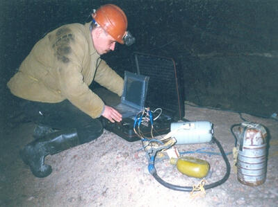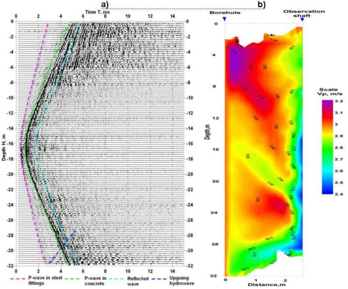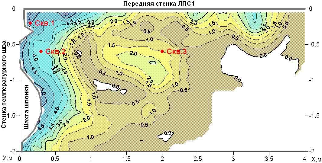 Цель работ – контроль температурного режима породного массива при формировании ледопородного ограждения в зоне замораживания шахтных стволов рудника Нежинской ГОК на основе ультразвуковых (акустических) способов контроля. Полевые измерительные работы выполнены Отделом активной сейсмоакустики Горного Института Академии Наук РФ.Нашей задачей являлось методическое сопровождение, обработка и интерпретация данных непродольного вертикального сейсмоакустического профилирования в контрольных скважинах.