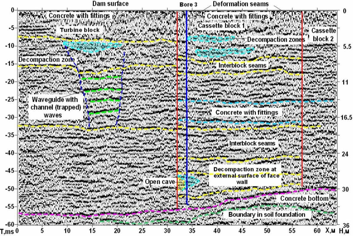 Сейсмические речные профили по проектным створам плотины ГЭС