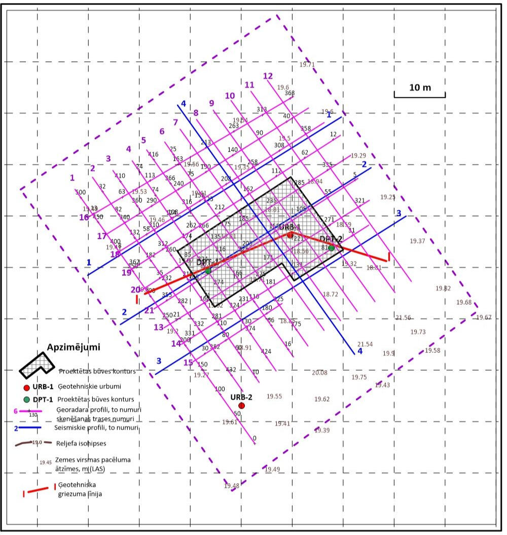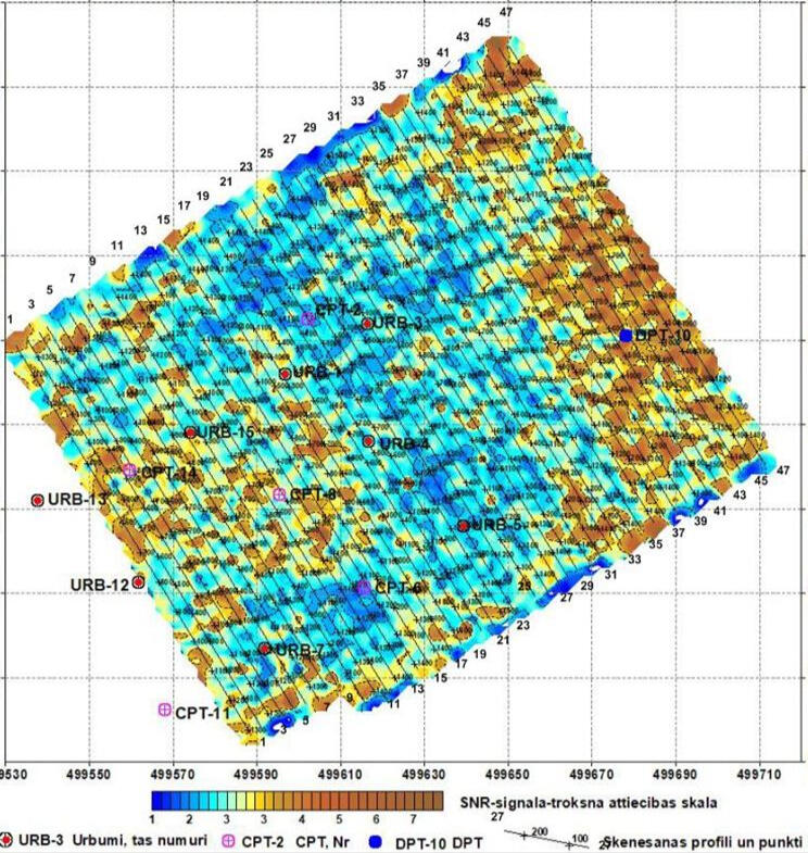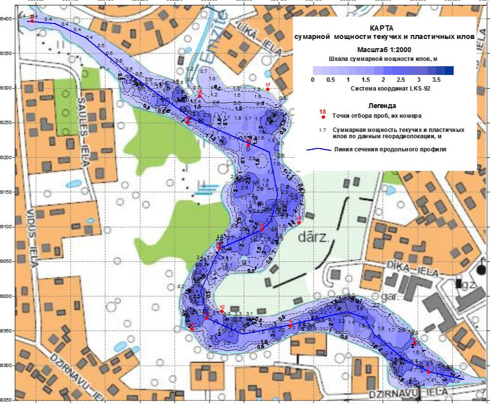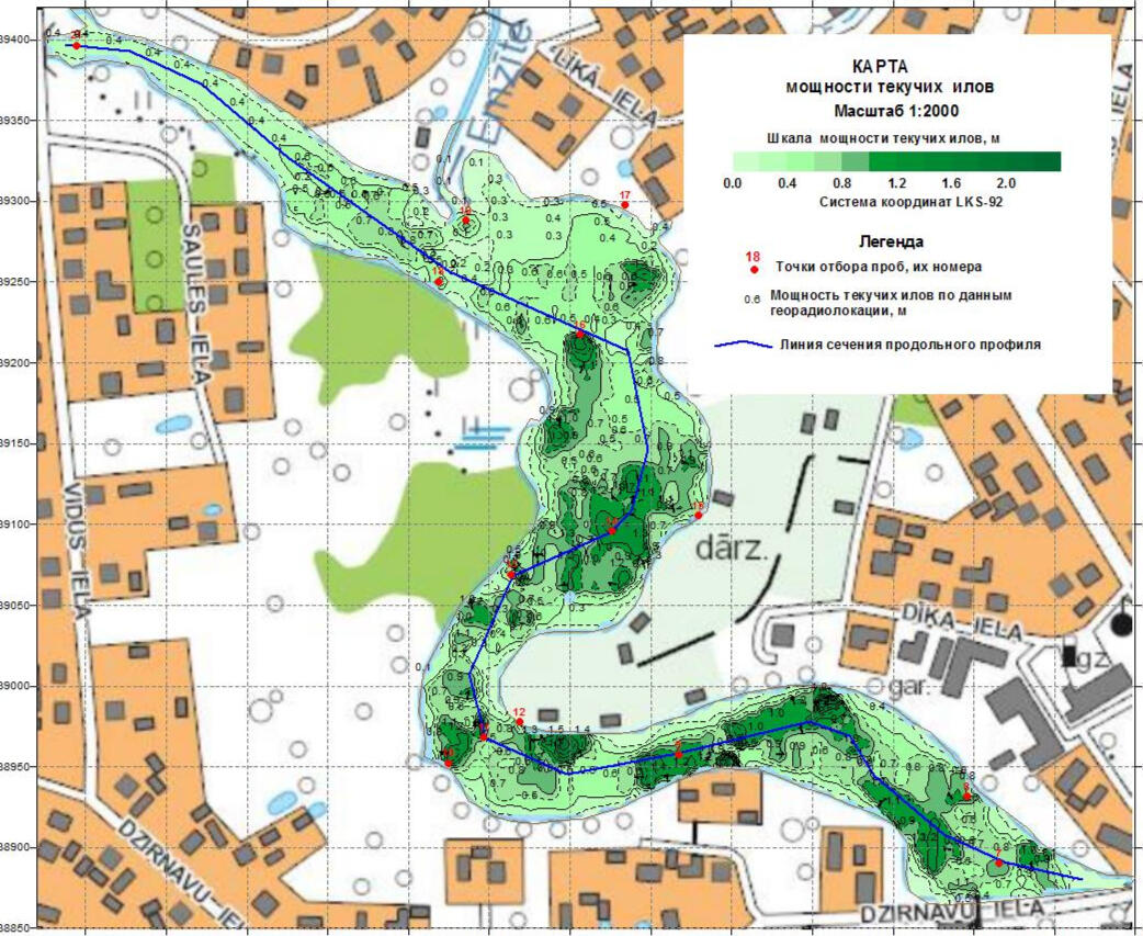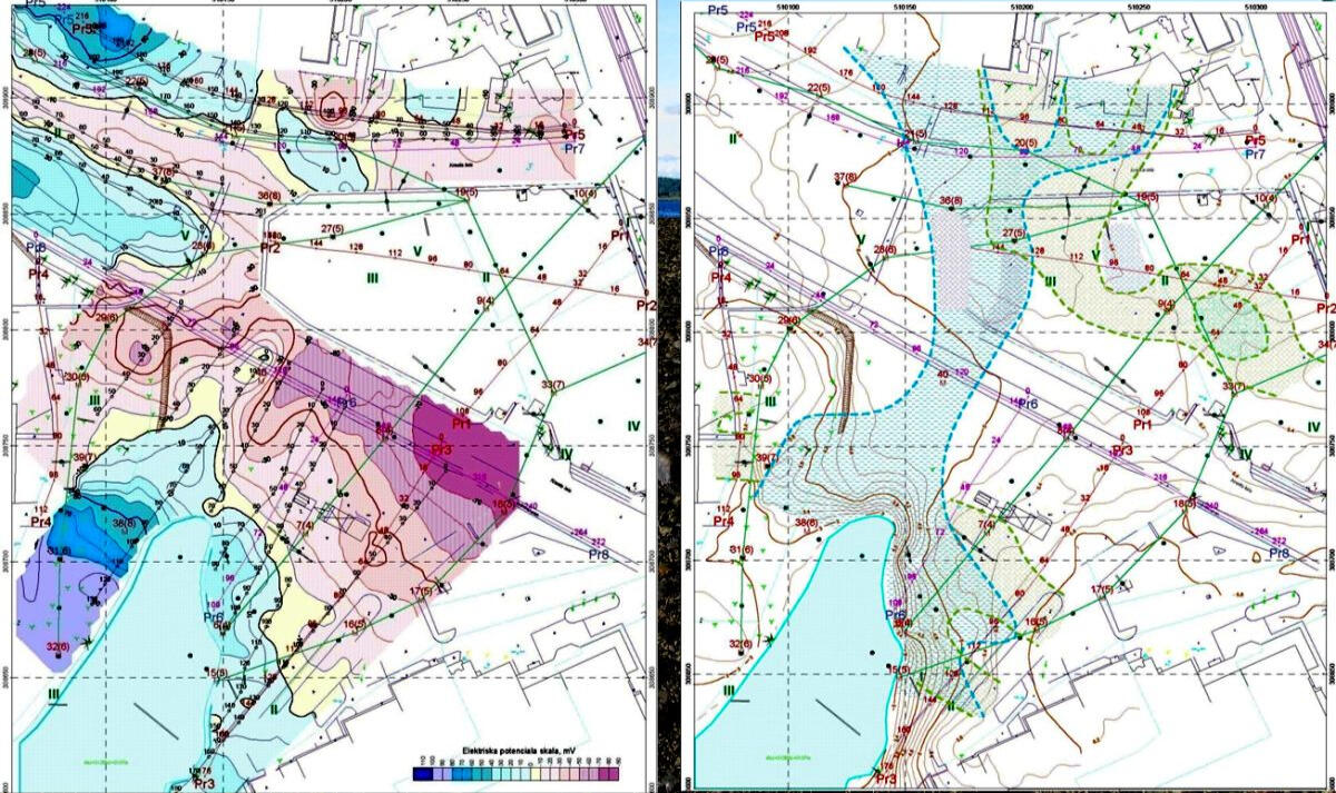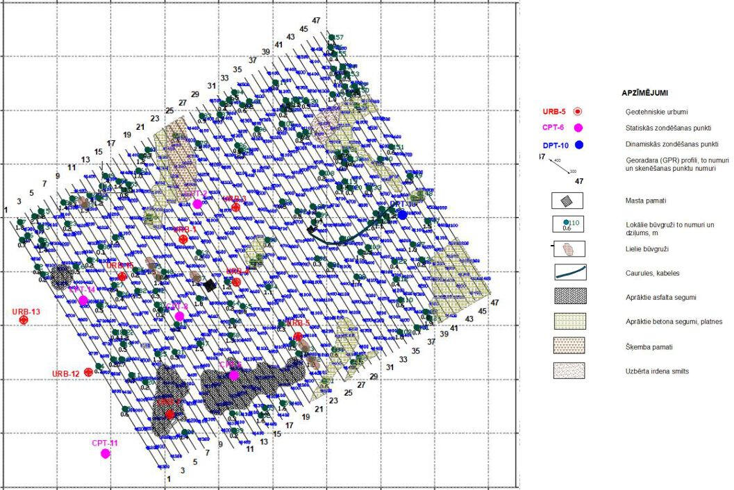 Работы методами инженерной сейсморазведки и электротомографии выполнены на недоступном для бурения островном участке в центральной части русла реки, осушенного при остановке работы гидроэлектростанции и сработке уровня расположенного ниже по каскаду водохранилища Кегумской ГЭС.Основной задачей работ было определение контуров бортов переуглубленной доледниковой долины р.Даугава, прорезающей в месте строительства плотины Плявиньской ГЭС коренные доломиты плявиньской свиты верхнего девона. Крутые борта долины, вдоль которых проявляются оползневые и карстовые процессы и повышенная скорость фильтрации подземных вод, являются неблагоприятными для устройства тяжелых бетонных фундаментов и стен водобойного колодца.