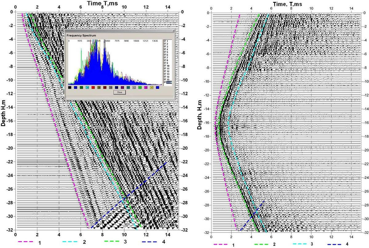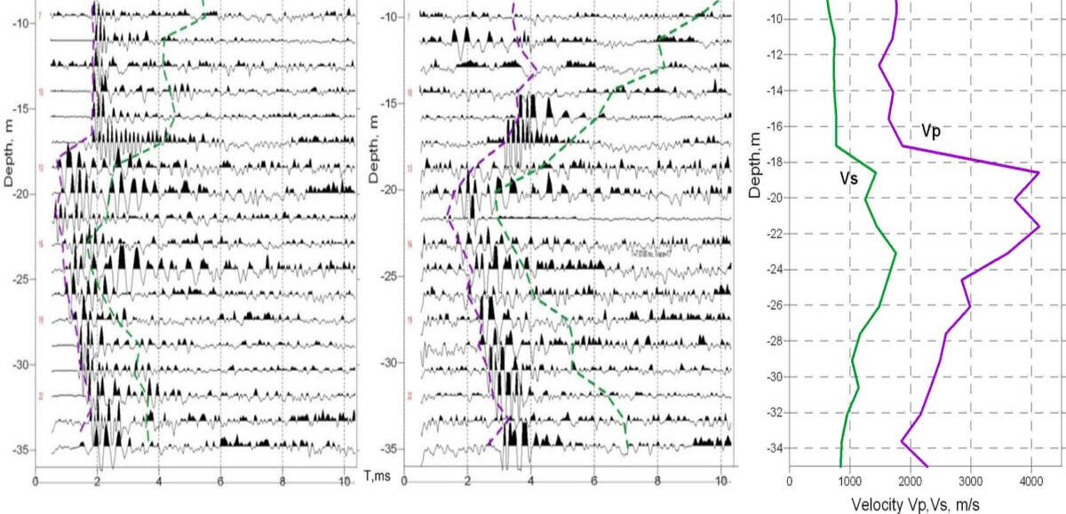 Разрезы ВСП в геотехнической скважине глубиной 35 м
