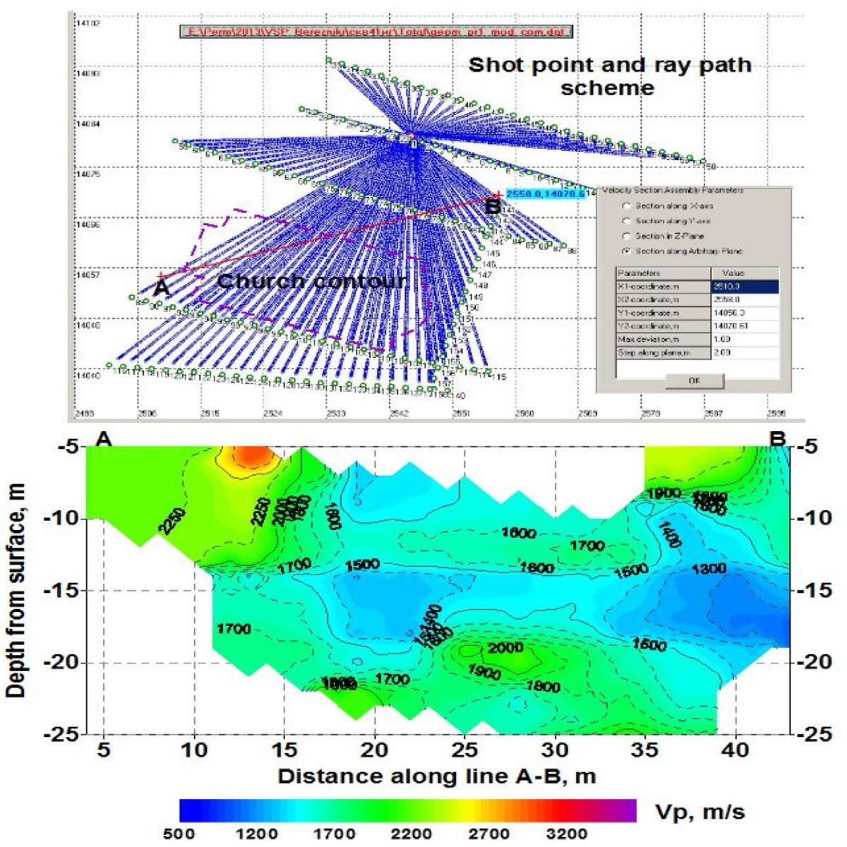 Сейсмоакустическое просвечивание и расчет томографических разрезов скоростей
