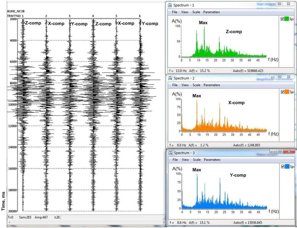 Наиболее распространенным видом вибрационных воздействий являются транспортные шумы. Спектральный состав вертикальной и горизонтальных компонент колебаний в грунтовом массиве при прохождении волн от автомобильного транспорта существенно различается.Спектры горизонтальных компонент существенно обогащены низкими частотами, наиболее опасными для фундаментов сооружений. Однако амплитуда смещений в горизонтальных компонентах обычно в разы ниже, чем по вертикальной компоненте