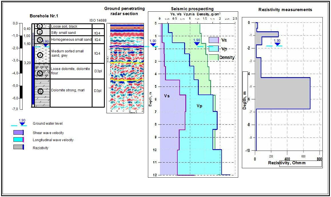 Комплексные зондирования грунтового массива методами малоглубинной сейсмики, электротомографии и радиолокации на проектном маршруте магистрали Rail Baltic