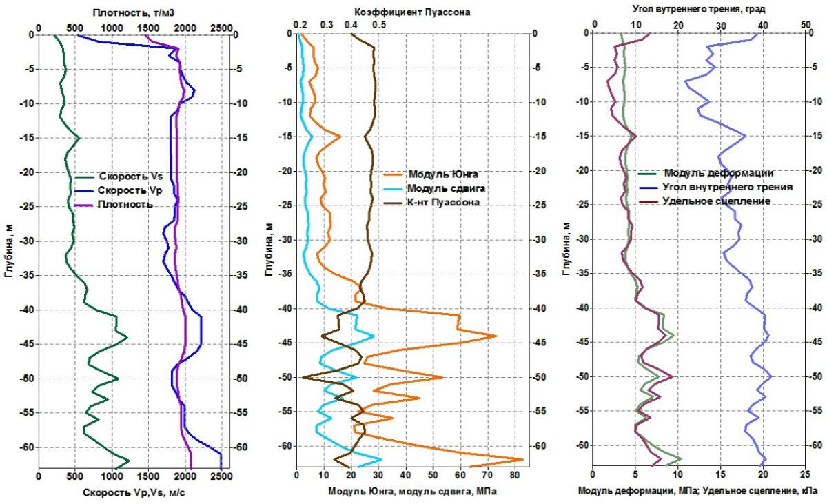 Графики физико-механических параметров грунтов, полученные на основе ВСП