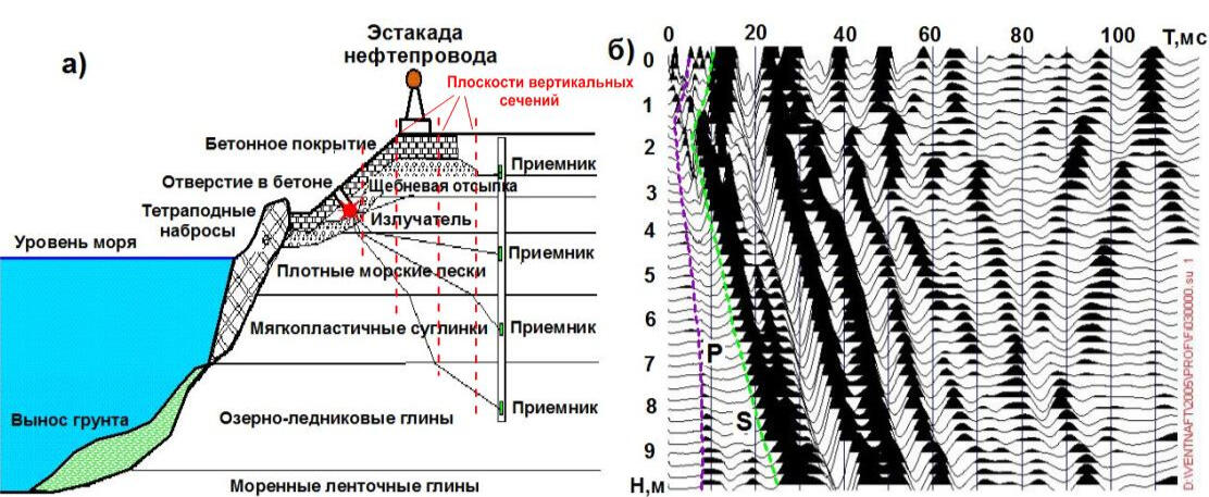 Выявление зон с ослабленными прочностными свойствами на участках проседания грунтового массива методом непродольного ВСП