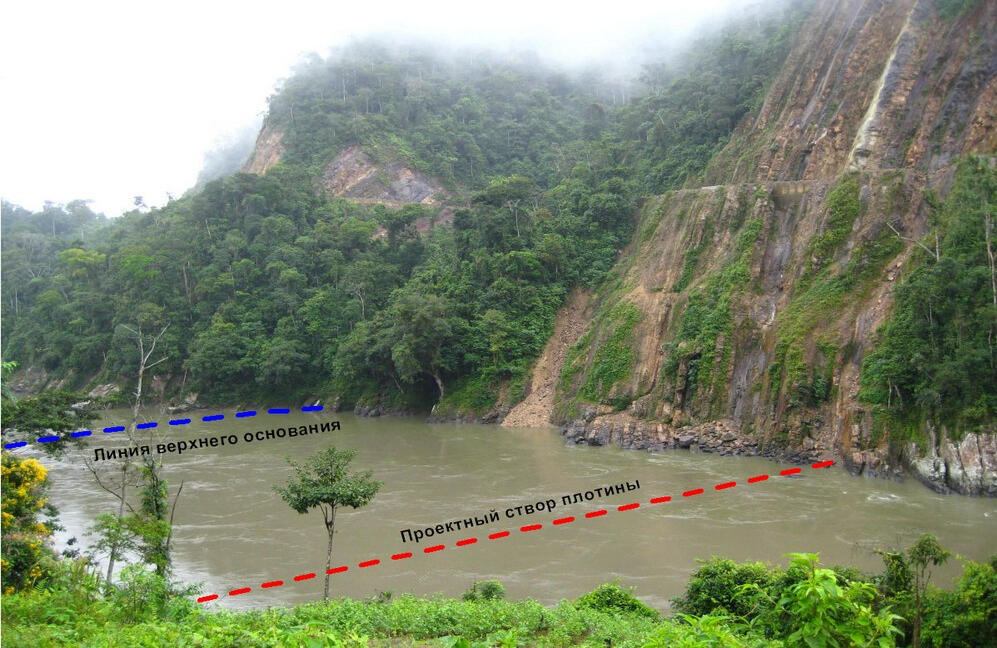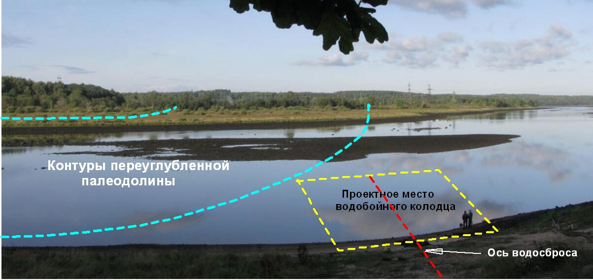 Ниже проектного створа плотины на разрезе проявляется широкая зона выветрелых коренных аргиллитов с ослабленными прочностными свойствами.