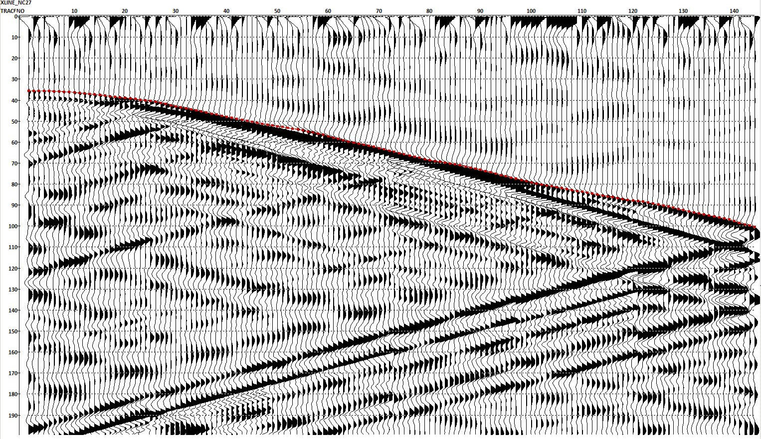 Пример записи отраженных волн до глубины около 400 м