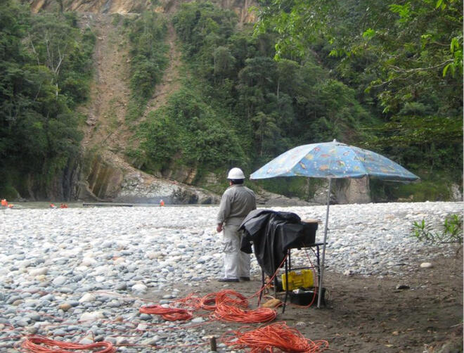 Работы методом рефрагированных и отраженных волн в долине р.Инамбари (департамент Пуно, Перу)