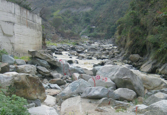 Работы включали выполнение профилирования методом рефрагированных волн на бортах горной долины, по урезам берегов и через русло реки, а также отработку профиля ОГТ методом отраженных волн по дороге на правом берегу поперек створа плотины.