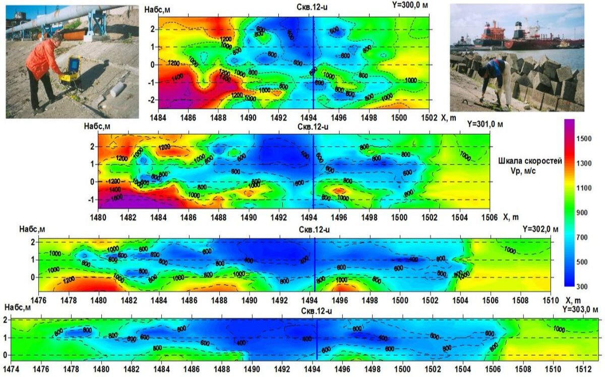- сейсмоакустическое исследование состояние массива насыпного грунта в основании причала Вентспилсского свободного порта с использованием комплекса методов преломленных, поверхностных и отраженных волн до глубины 10-15м.